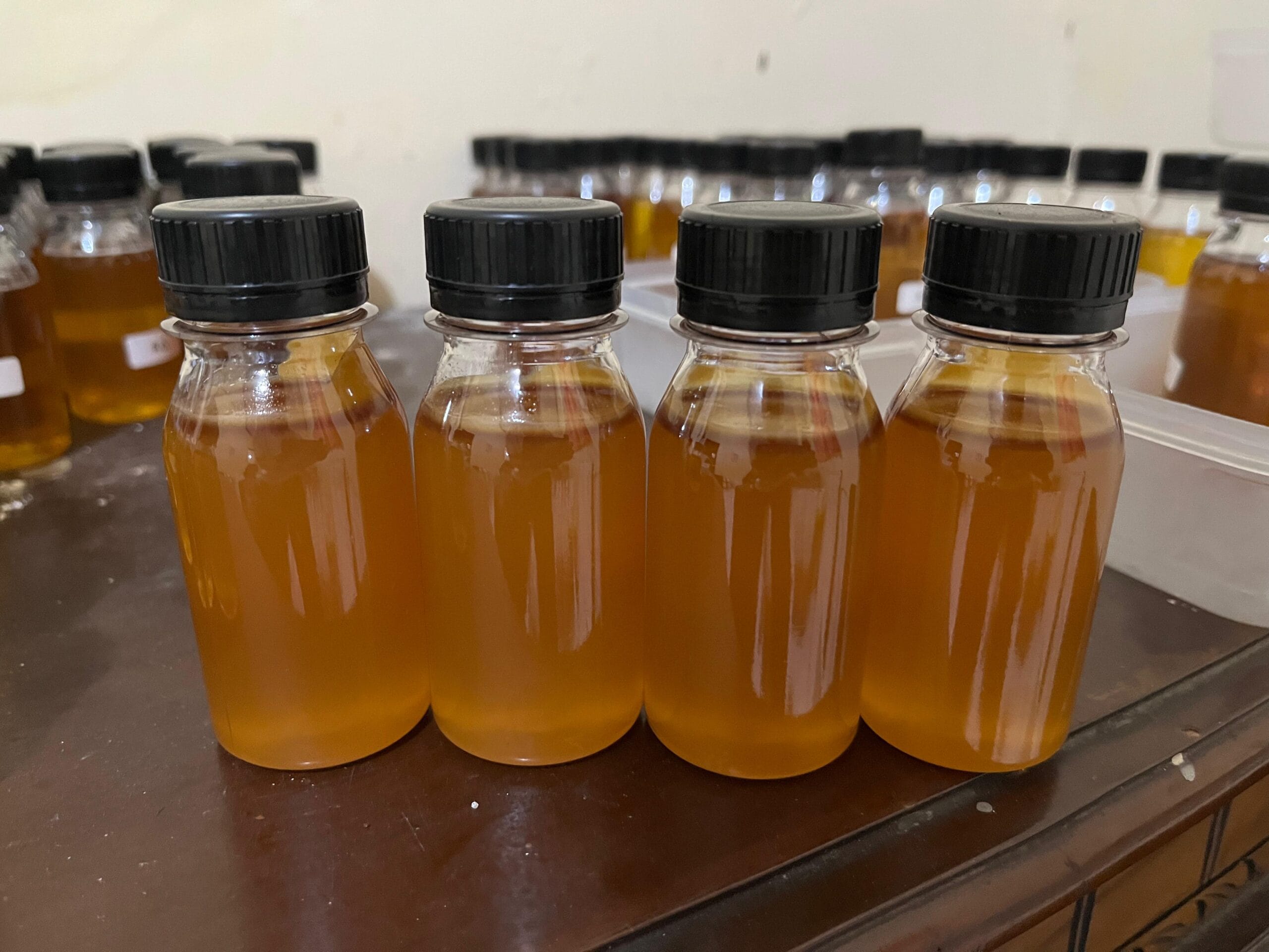 • Perhatikan tekstur madu yang lebih encer dibandingkan madu biasa, dengan rasa asam manis yang khas.