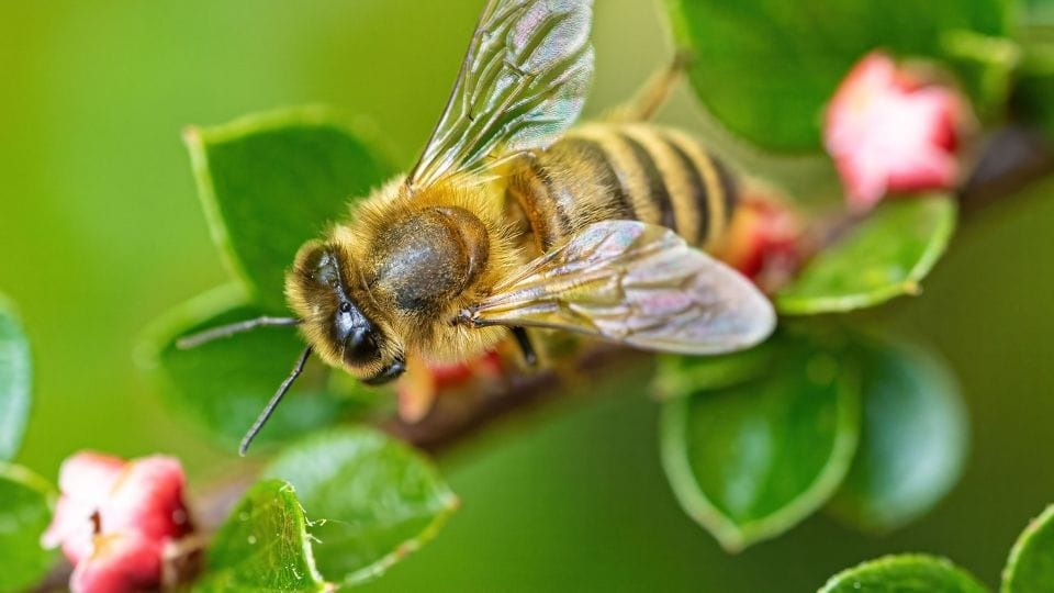 Saat lebah madu berpindah dari satu bunga ke bunga lain, serbuk sari menempel pada tubuhnya dan membantu proses reproduksi tanaman secara alami.